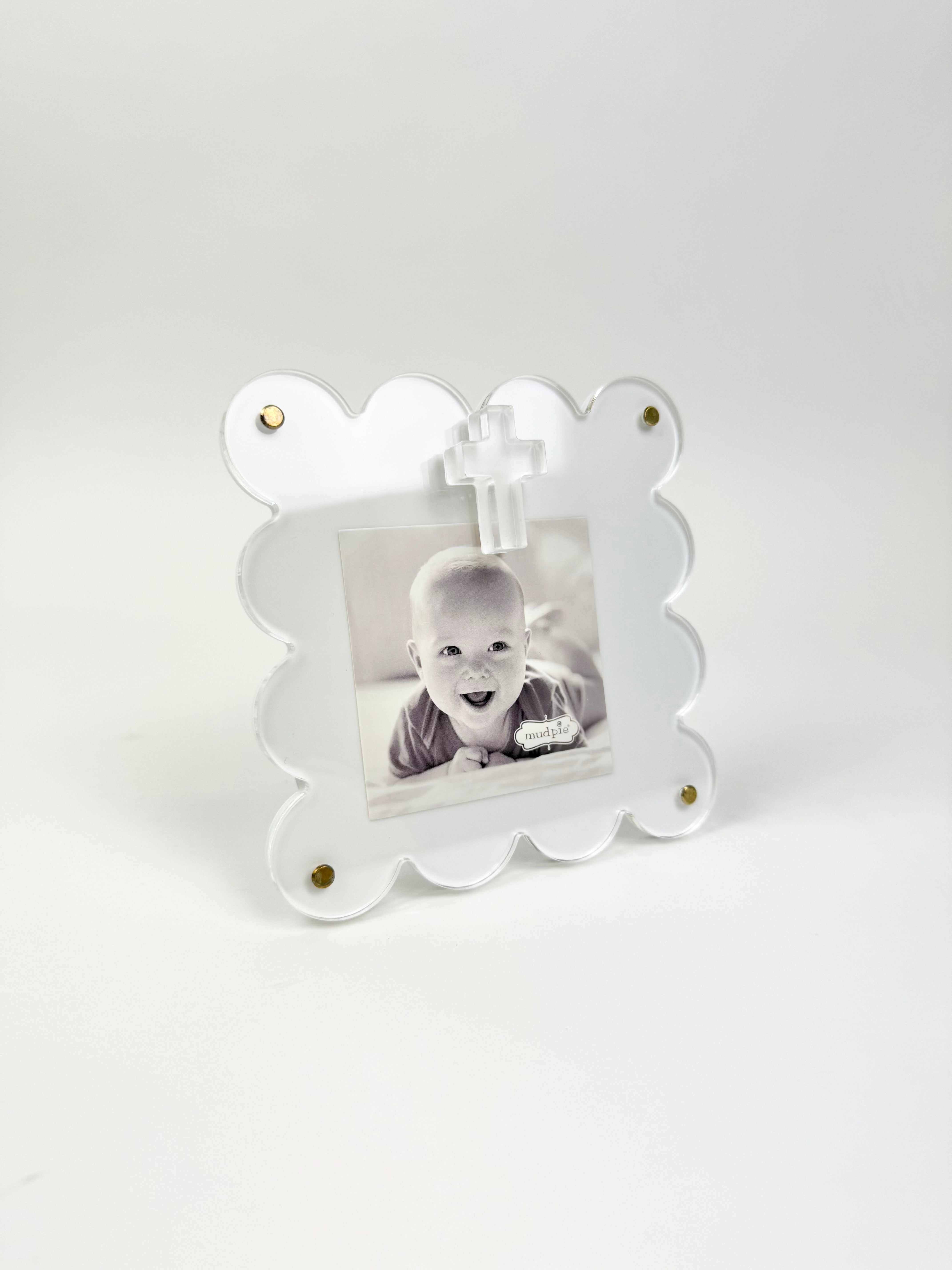 Product form White Acrylic Frame with Cross $20.00 This little scalloped frame is perfect for adding a photo in any room! Simply unscrew the four reivets in each... Read more Read more Add to cart This item is a recurring or deferred purchase. By continuing, I agree to the cancellation policy and authorize you to charge my payment method at the prices, frequency and dates listed on this page until my order is fulfilled or I cancel, if permitted.