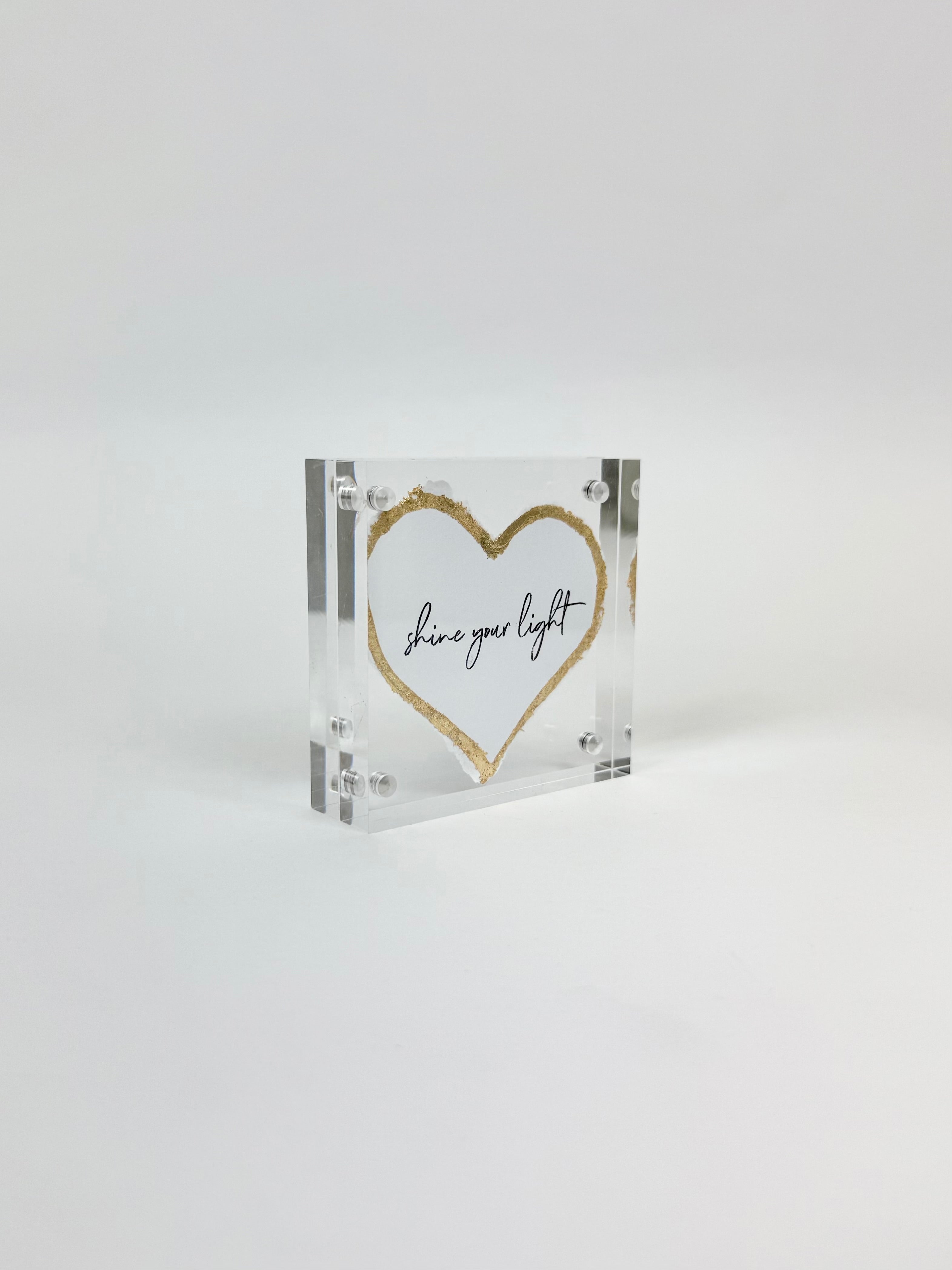 Last stock! Product form Shine Your Light Heart Acrylic Frame $34.00 This acrylic frame is a great piece of decor that you can add to your bookshelf or dresser or even... Read more Read more Add to cart This item is a recurring or deferred purchase. By continuing, I agree to the cancellation policy and authorize you to charge my payment method at the prices, frequency and dates listed on this page until my order is fulfilled or I cancel, if permitted.