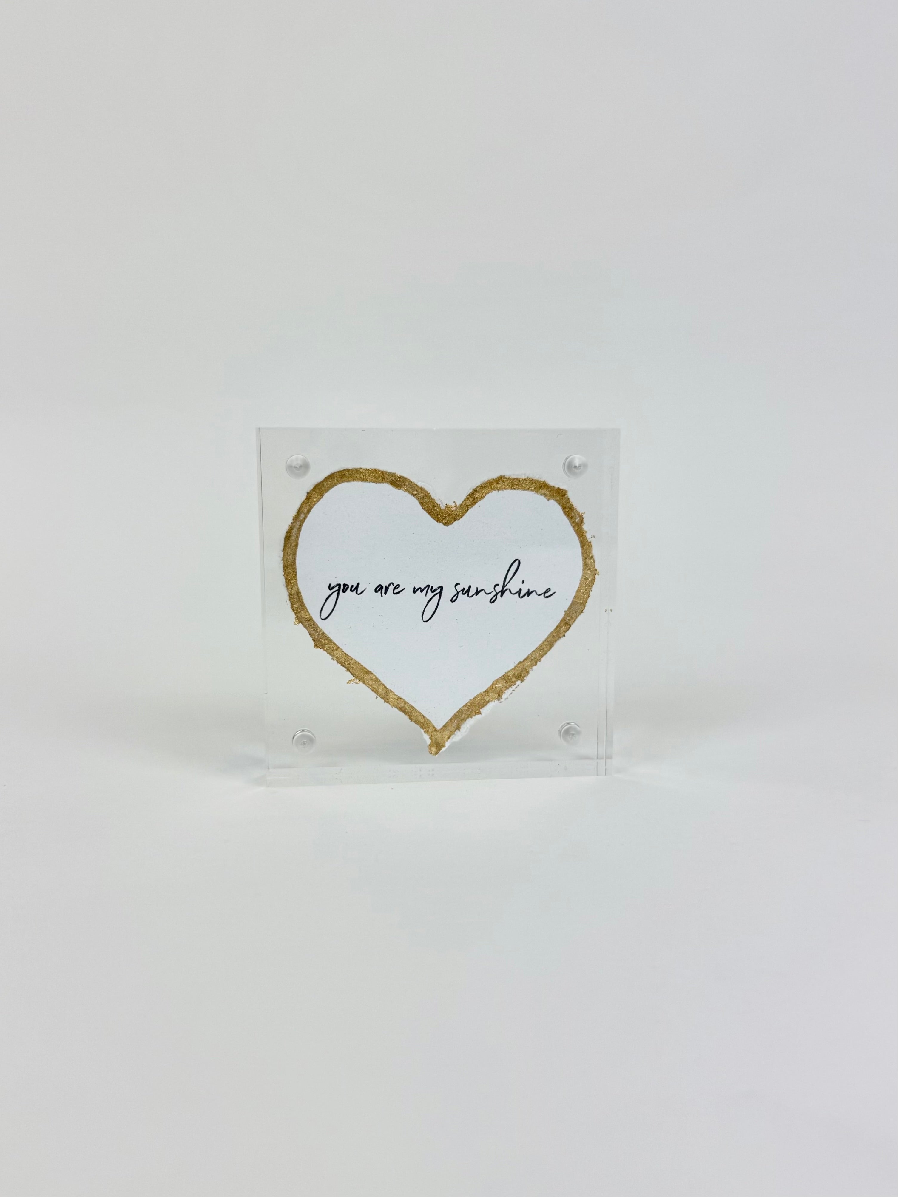 Product form You Are My Sunshine Heart Acrylic Frame $34.00 This acrylic frame is a great piece of decor that you can add to your bookshelf or dresser or even... Read more Read more Add to cart This item is a recurring or deferred purchase. By continuing, I agree to the cancellation policy and authorize you to charge my payment method at the prices, frequency and dates listed on this page until my order is fulfilled or I cancel, if permitted.