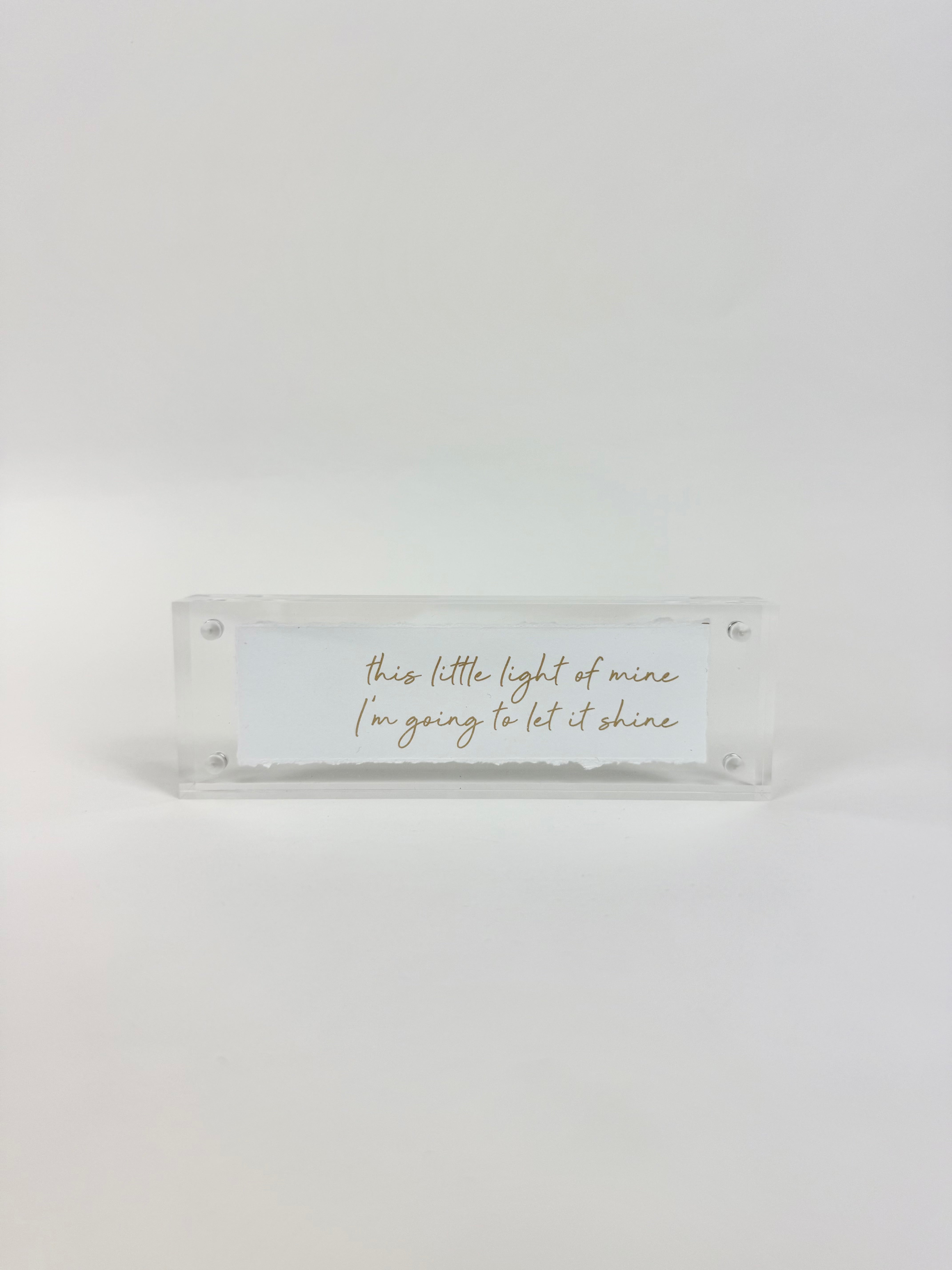 Product form This Little Light of Mine Acrylic Frame $32.00 This acrylic frame is a great piece of decor that you can add to your bookshelf or dresser or even... Read more Read more Add to cart This item is a recurring or deferred purchase. By continuing, I agree to the cancellation policy and authorize you to charge my payment method at the prices, frequency and dates listed on this page until my order is fulfilled or I cancel, if permitted.