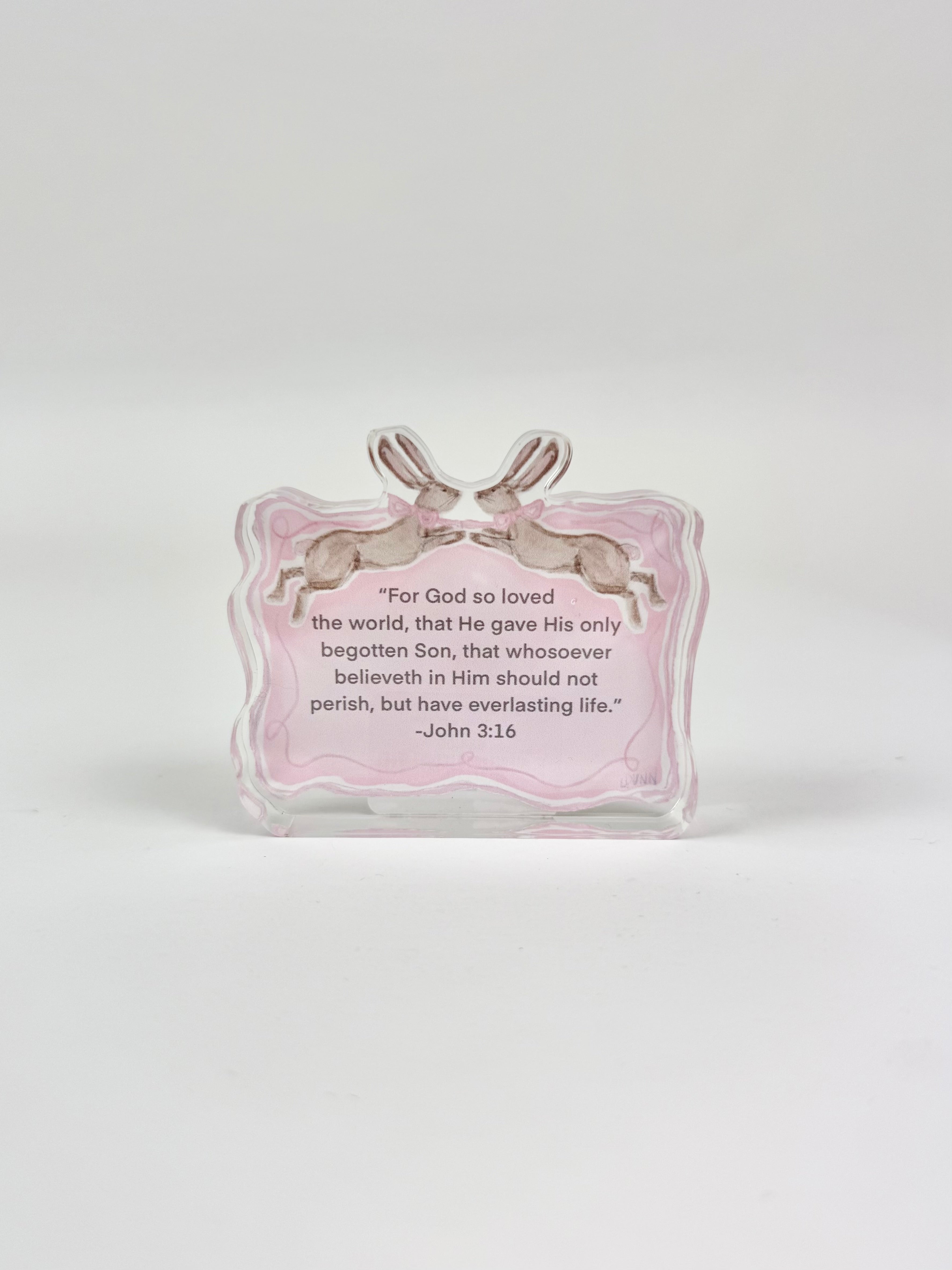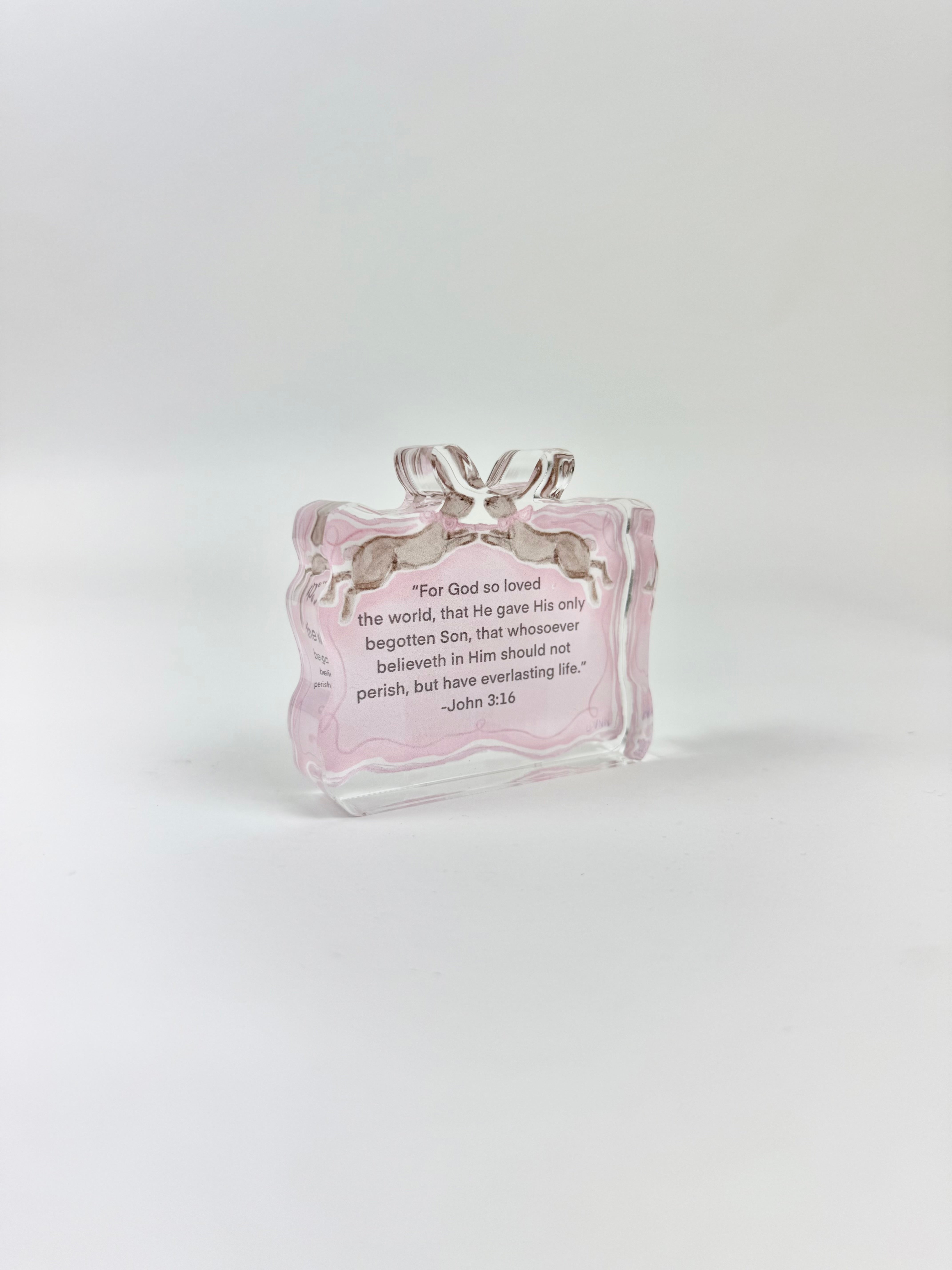 Product form John 3:16 Pink Acrylic Scripture Block $34.00 This little block is a sweet sentiment that can be added to a nursery or any space in your home!... Read more Read more Add to cart This item is a recurring or deferred purchase. By continuing, I agree to the cancellation policy and authorize you to charge my payment method at the prices, frequency and dates listed on this page until my order is fulfilled or I cancel, if permitted.