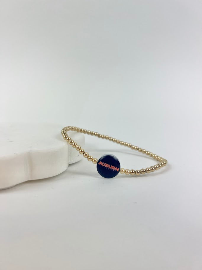 Product form Beaded Blondes Auburn Logo Bracelet $42.00 This gold beaded bracelet with an Auburn logo charm is a great addition to your gameday stack this fall! ... Read more Read more Add to cart This item is a recurring or deferred purchase. By continuing, I agree to the cancellation policy and authorize you to charge my payment method at the prices, frequency and dates listed on this page until my order is fulfilled or I cancel, if permitted.
