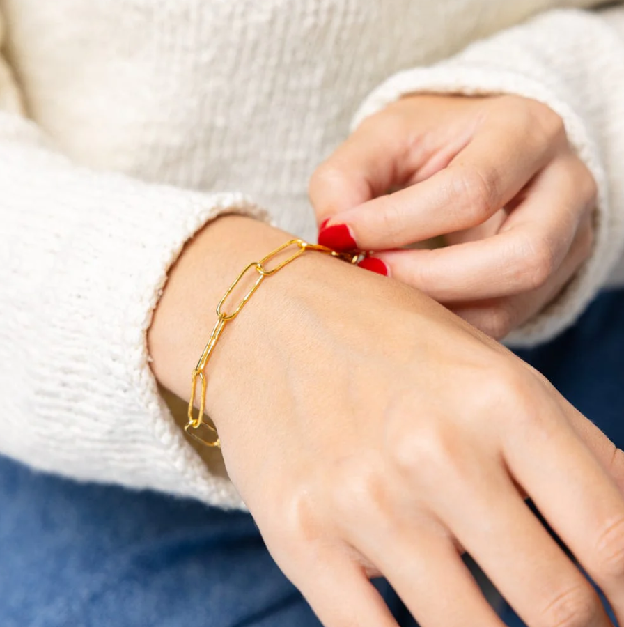 Product form Joanne Gold Chain Bracelet $36.00 This simple paperclip style bracelet is perfect to style with all your existing accessories! Product Details Length: 6.5" with a... Read more Read more Add to cart This item is a recurring or deferred purchase. By continuing, I agree to the cancellation policy and authorize you to charge my payment method at the prices, frequency and dates listed on this page until my order is fulfilled or I cancel, if permitted.