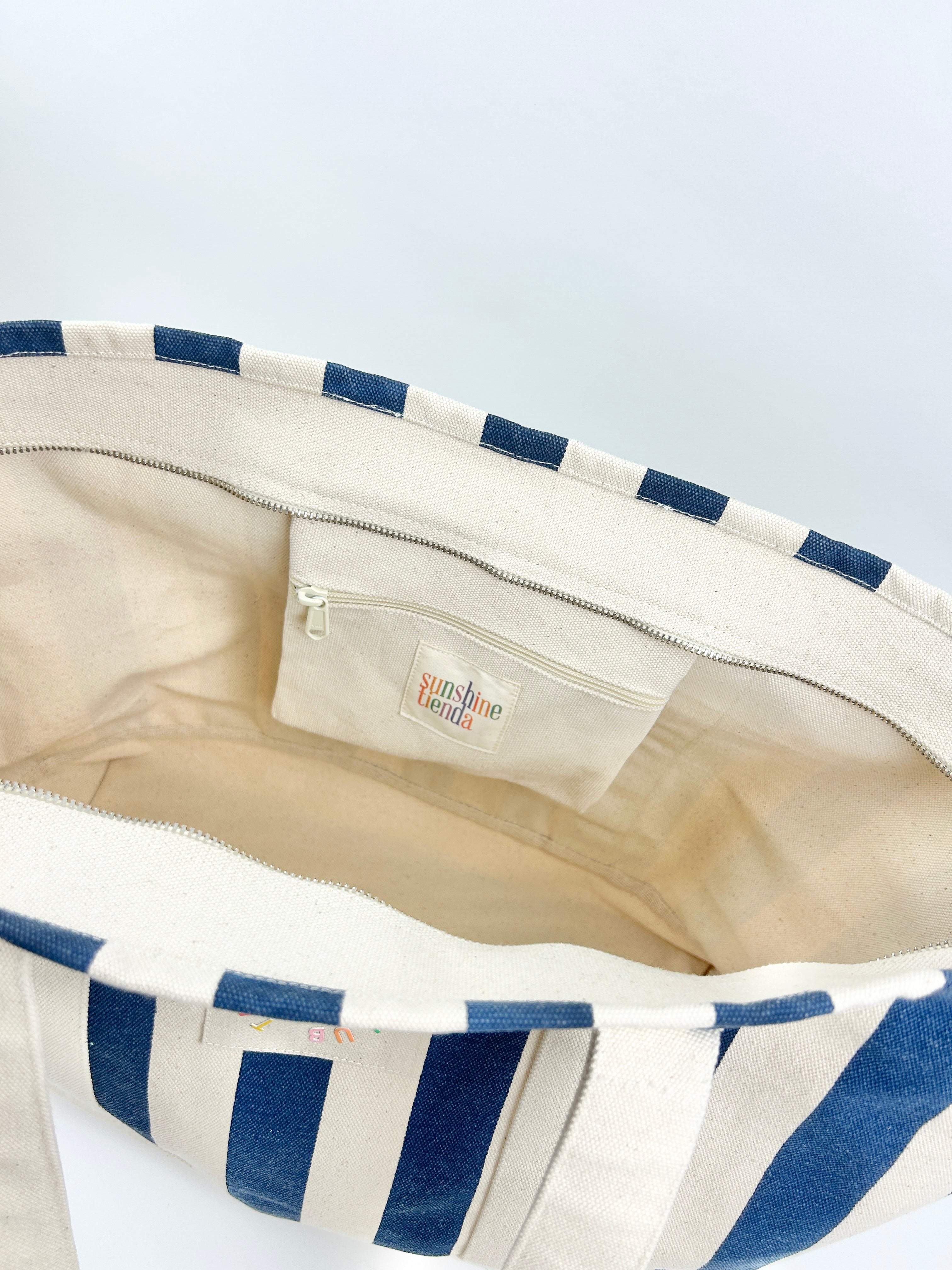 Product form Sunshine Tienda Navy Stripe Canvas Tote $78.00 Get ready for some summer fun with this cute navy striped canvas tote bag! This bag is durable and stylish,... Read more Read more Add to cart This item is a recurring or deferred purchase. By continuing, I agree to the cancellation policy and authorize you to charge my payment method at the prices, frequency and dates listed on this page until my order is fulfilled or I cancel, if permitted.
