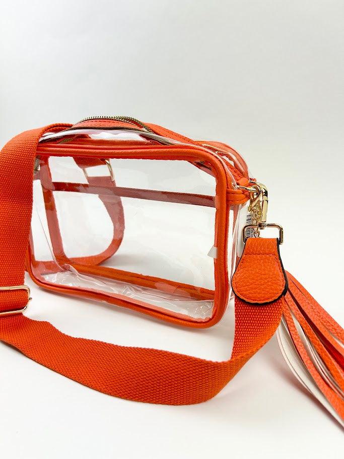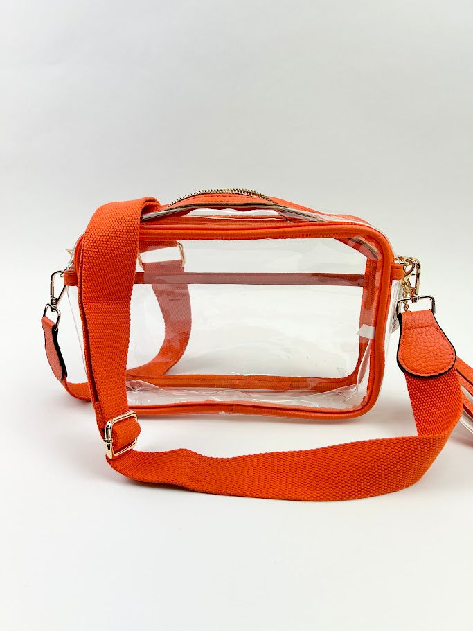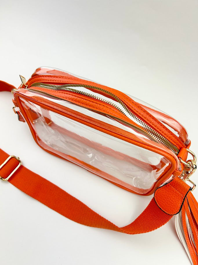 Product form Clear Crossbody Camera Bag $36.00 Every girl's essential gameday accessory is a cute clear bag! Product Details Features an adjustable/removable strap Size: 10"L x 3"W... Read more Read more Org Navy Color Org Add to cart This item is a recurring or deferred purchase. By continuing, I agree to the cancellation policy and authorize you to charge my payment method at the prices, frequency and dates listed on this page until my order is fulfilled or I cancel, if permitted.