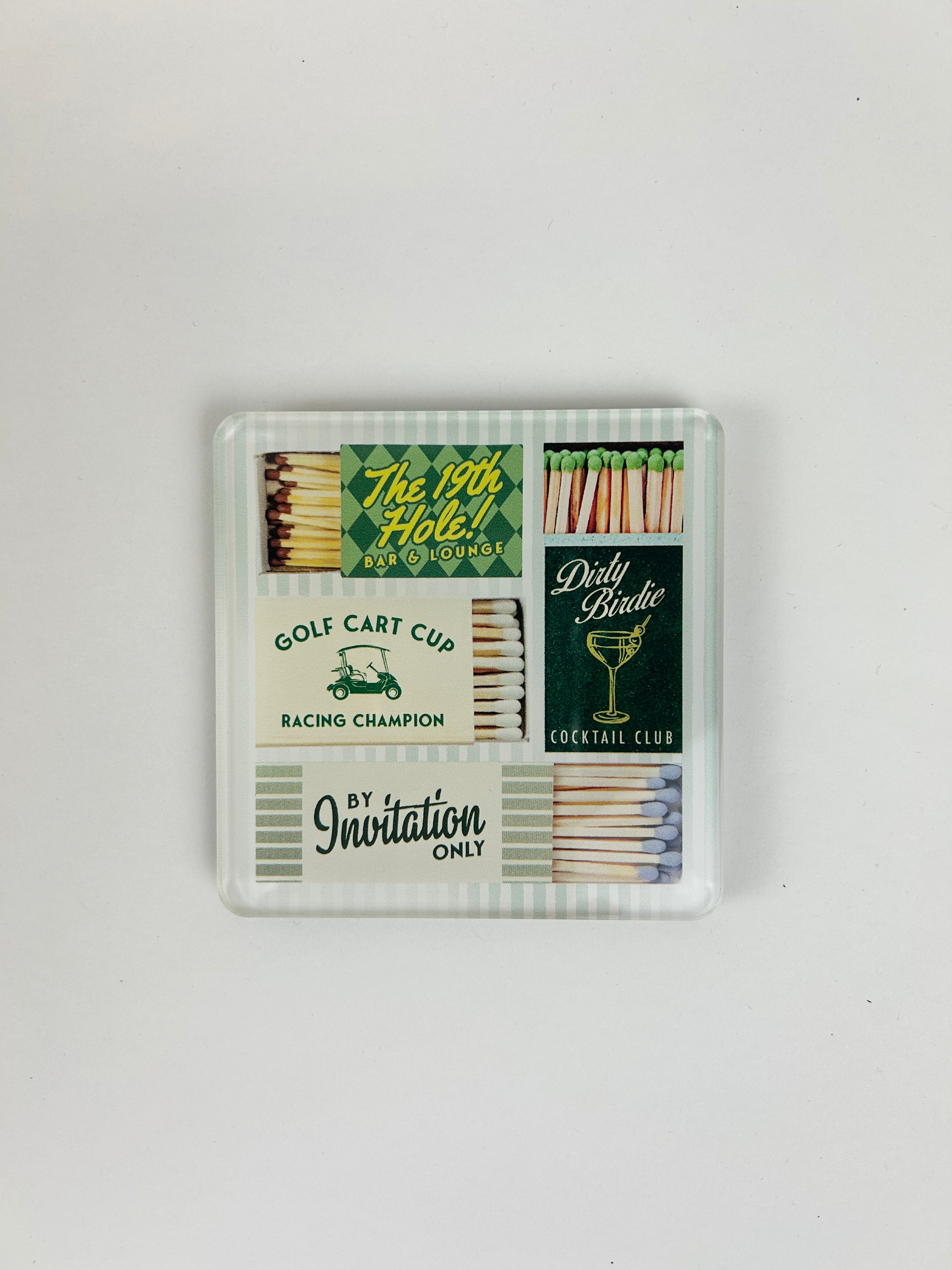 Product form Golf Matchbook Acrylic Coaster $19.50 This golf matchbox themed coaster is a fun addition to any space! Product Details Size: 4" Diameter Made from acrylic... Read more Read more Add to cart This item is a recurring or deferred purchase. By continuing, I agree to the cancellation policy and authorize you to charge my payment method at the prices, frequency and dates listed on this page until my order is fulfilled or I cancel, if permitted.