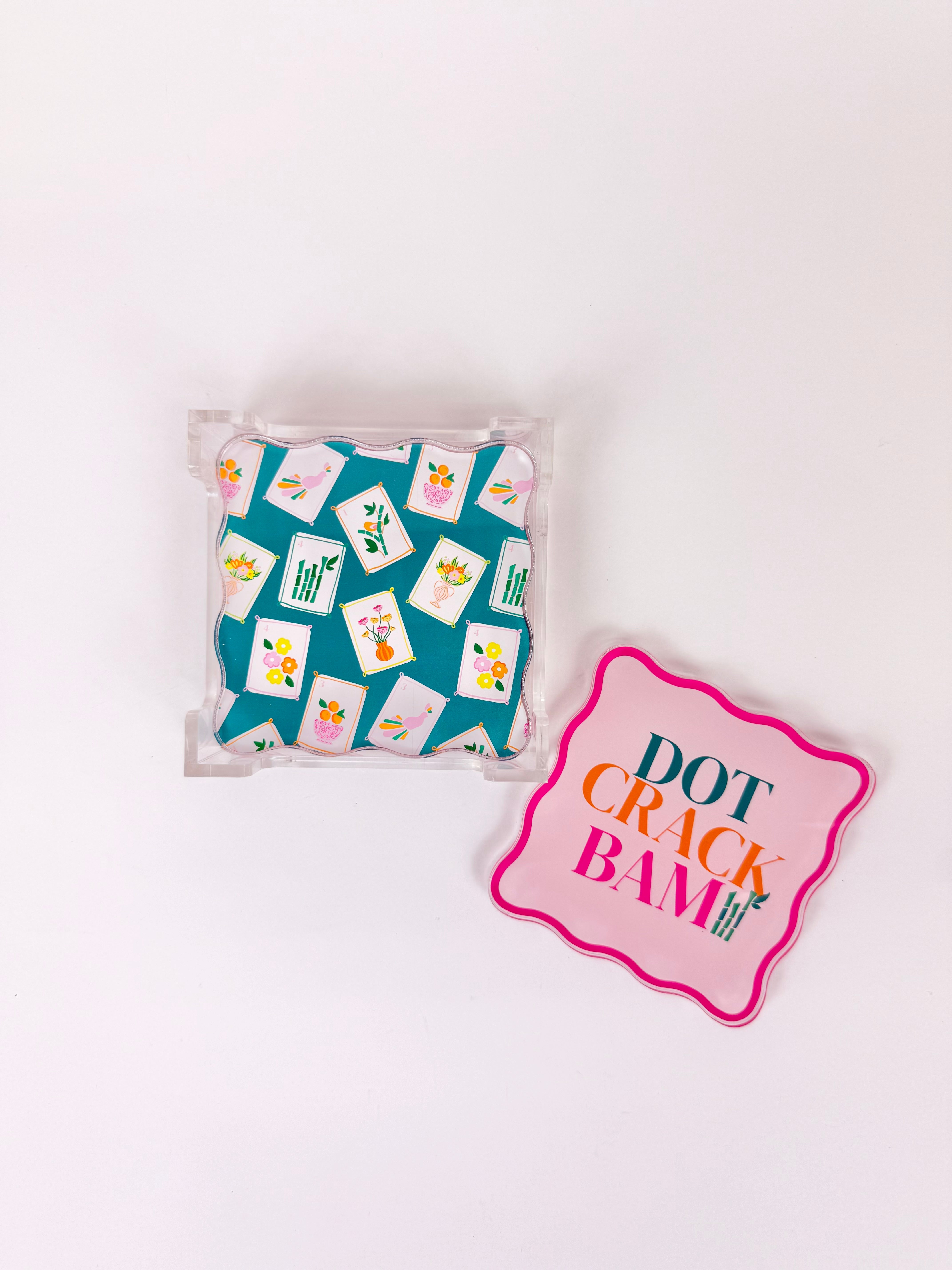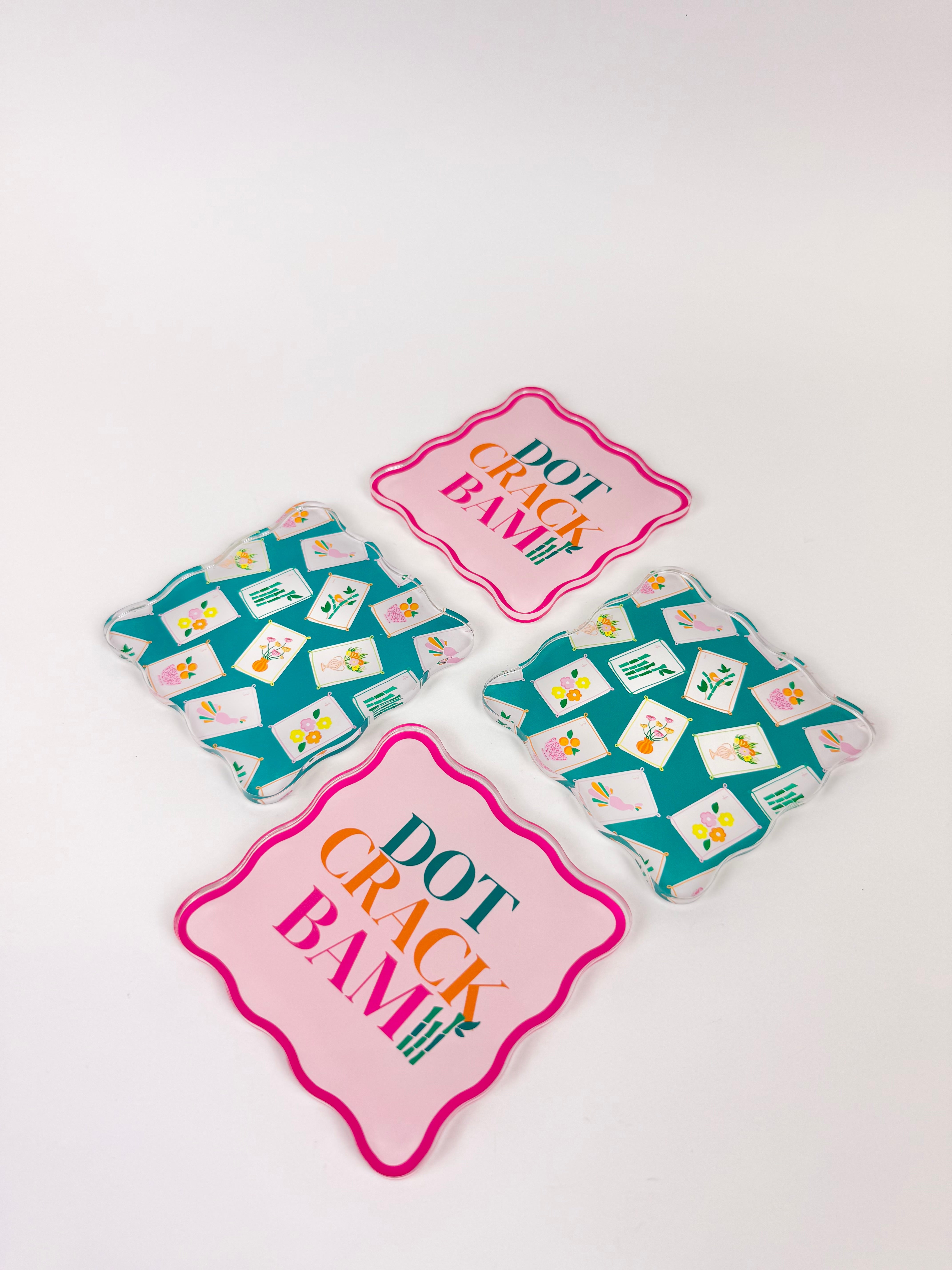 Product form It's Mahj Time Acrylic Coaster Set $44.00 These acrylic coasters are perfect to add to your coffee table, bar cart, or mahjong table for gamenight! Product Details... Read more Read more Add to cart This item is a recurring or deferred purchase. By continuing, I agree to the cancellation policy and authorize you to charge my payment method at the prices, frequency and dates listed on this page until my order is fulfilled or I cancel, if permitted.