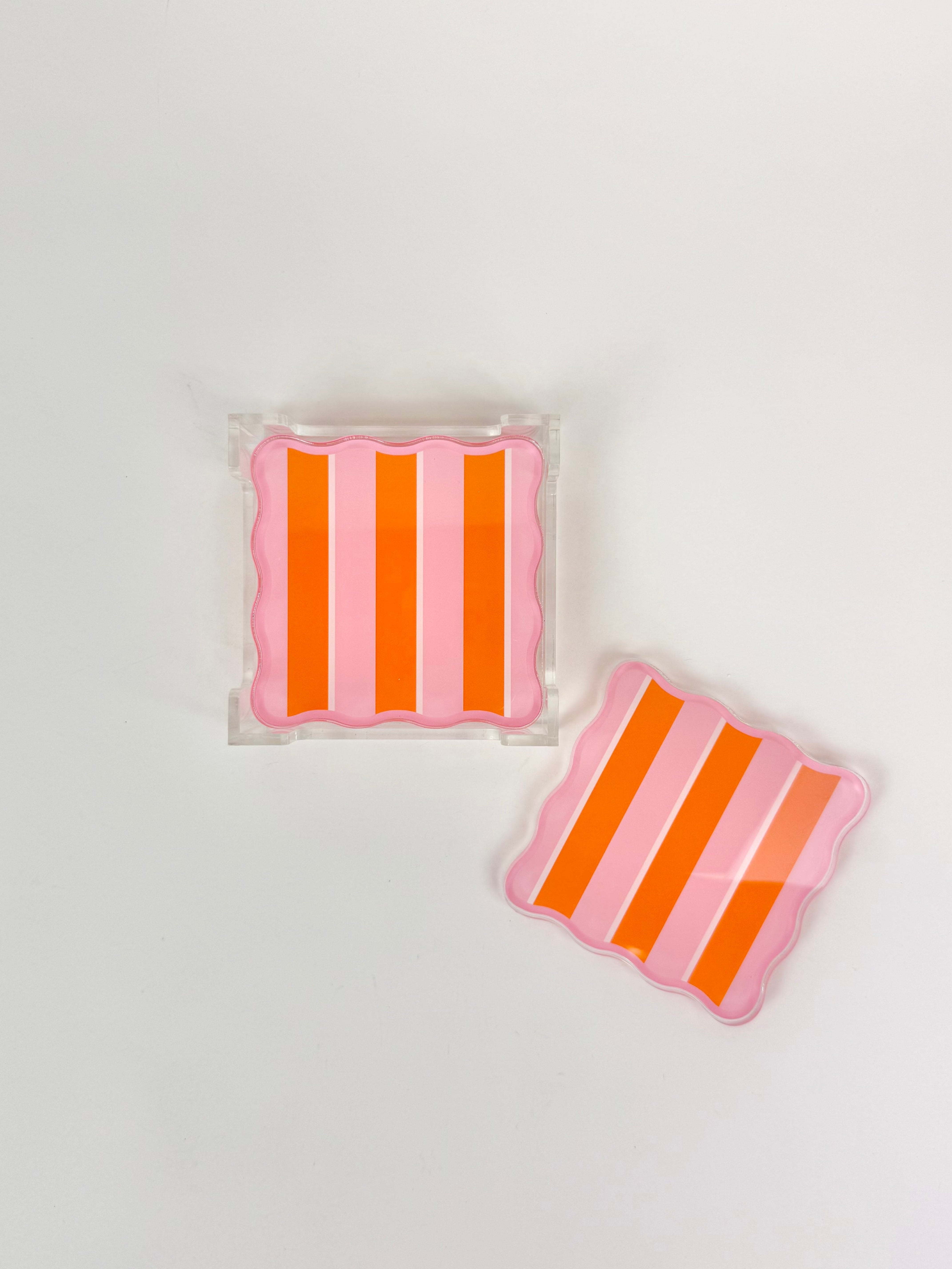 Product form Sicily Stripes Pink Acrylic Coaster Set $44.00 These acrylic coasters are perfect to add to your coffee table or bar cart! Product Details Set of 4 coasters... Read more Read more Add to cart This item is a recurring or deferred purchase. By continuing, I agree to the cancellation policy and authorize you to charge my payment method at the prices, frequency and dates listed on this page until my order is fulfilled or I cancel, if permitted.