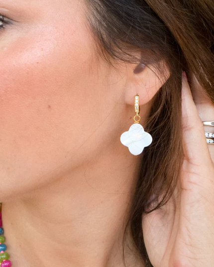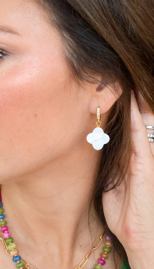 Last stock! Product form Bethany Pearl Clover Earrings $36.00 Product Details Material: 18k gold plated Huggie style with CZ stones Features mother of pearl quatrefoil Read more Read more Add to cart This item is a recurring or deferred purchase. By continuing, I agree to the cancellation policy and authorize you to charge my payment method at the prices, frequency and dates listed on this page until my order is fulfilled or I cancel, if permitted.