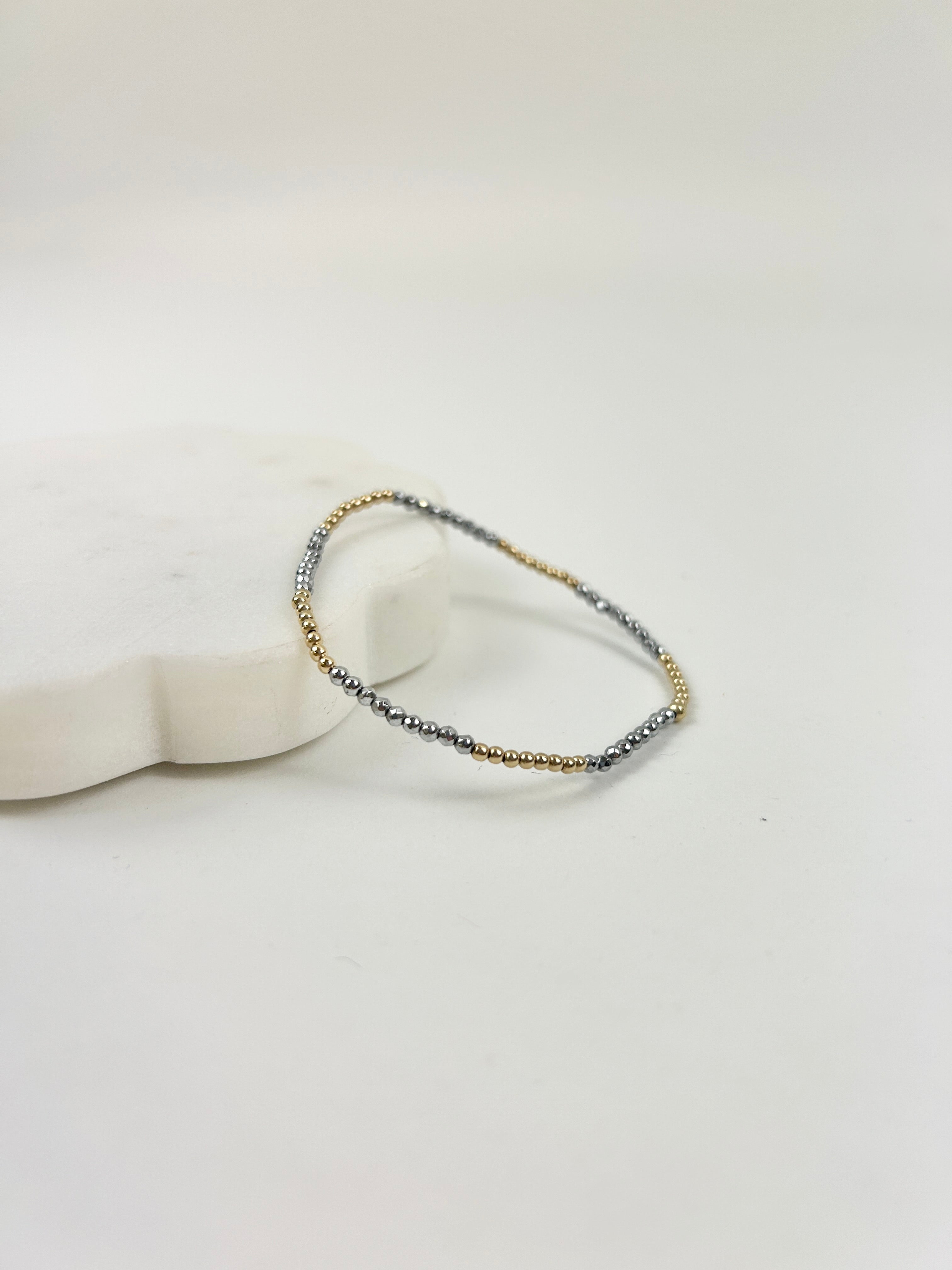 Product form Enewton Faceted Silver Hematite Blissful 2mm Bracelet $38.00 This bracelet features a combination of faceted silver hematite gemstones and gold-filled beads and is a sweet addition to your... Read more Read more Add to cart This item is a recurring or deferred purchase. By continuing, I agree to the cancellation policy and authorize you to charge my payment method at the prices, frequency and dates listed on this page until my order is fulfilled or I cancel, if permitted.