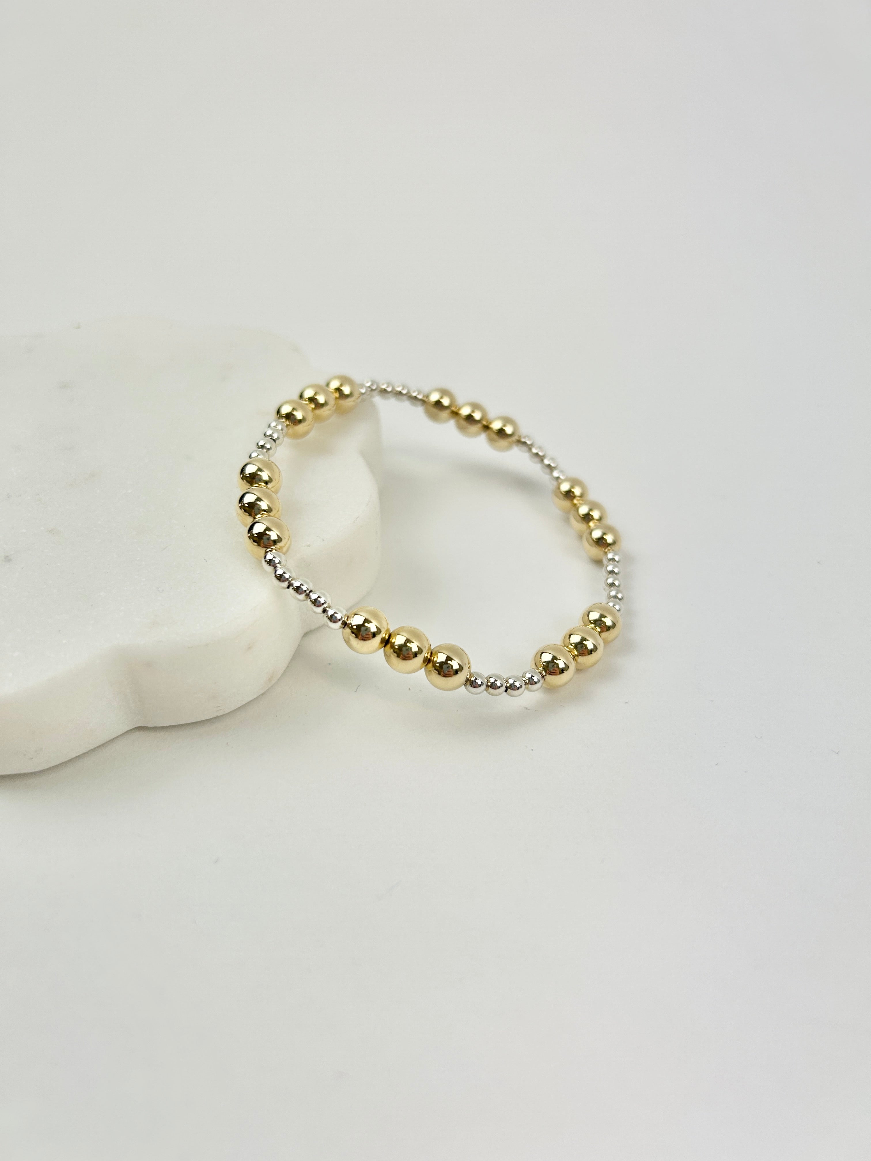 Product form Enewton Joy Pattern 6mm Bead Bracelet-Mixed Metal $82.00 Product Details Size: Measures at 6.25" Features sterling silver and 6mm 14k gold-fillled beads Hand beaded on high performance elastic... Read more Read more Add to cart This item is a recurring or deferred purchase. By continuing, I agree to the cancellation policy and authorize you to charge my payment method at the prices, frequency and dates listed on this page until my order is fulfilled or I cancel, if permitted.