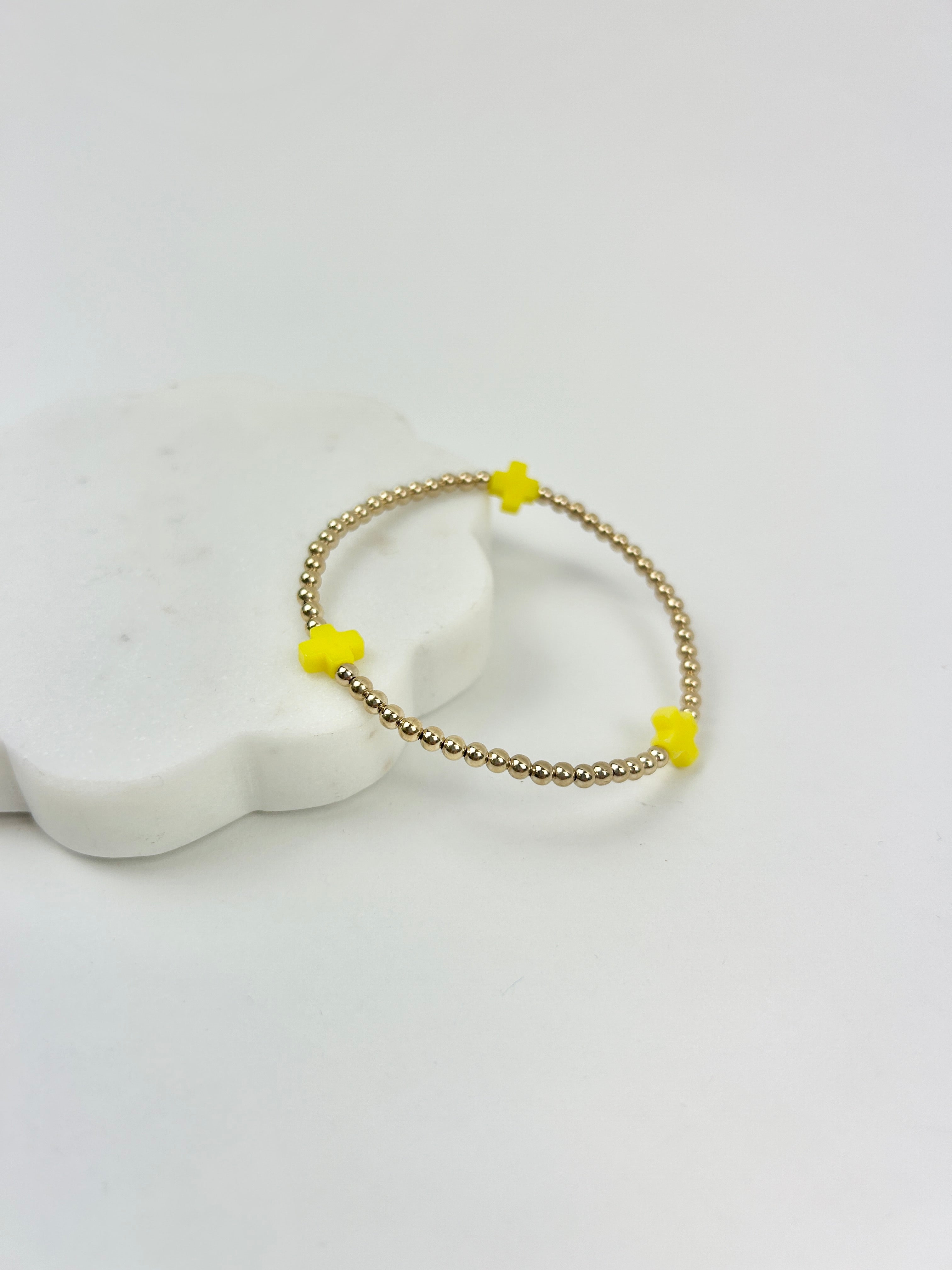 Product form Enewton Signature Cross 3mm Bracelet - Canary $38.00 Product Details Measures at 6.25" around the wrist Made with 3mm, 14kt gold-filled beads Features signature cross beads Worry-free... Read more Read more Add to cart This item is a recurring or deferred purchase. By continuing, I agree to the cancellation policy and authorize you to charge my payment method at the prices, frequency and dates listed on this page until my order is fulfilled or I cancel, if permitted.