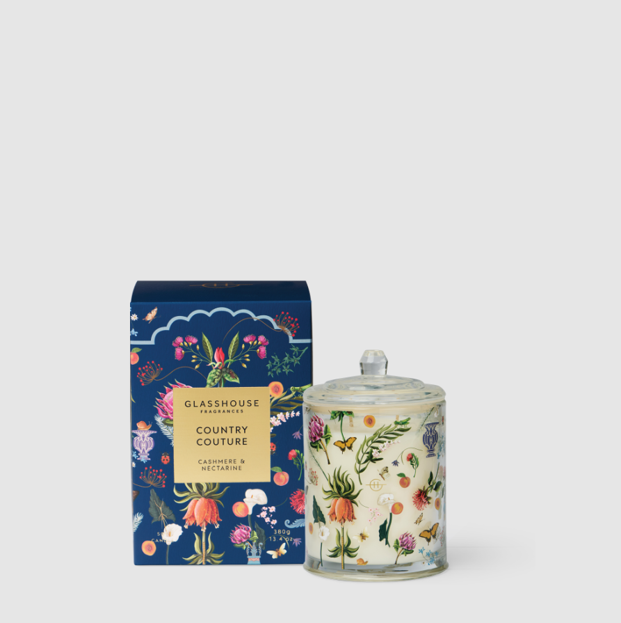 Product form Glasshouse Candle 13.4oz - Country Couture $60.00 An elegant addition to your home, this Glasshosue Country Couture scent features a beautiful floral jar and the captivating notes... Read more Read more Add to cart This item is a recurring or deferred purchase. By continuing, I agree to the cancellation policy and authorize you to charge my payment method at the prices, frequency and dates listed on this page until my order is fulfilled or I cancel, if permitted.