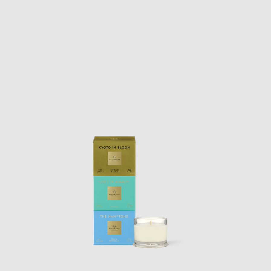 When you can't decide which Glasshouse scent is your favorite, choose this trio and get three 1.1oz candles in the bestselling fragrances!