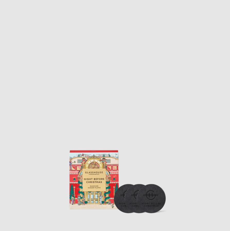 Product form Glasshouse Car Diffuser Refill Night Before Christmas $15.00 When it's time to refill your Glasshouse car diffuser, choose the same scent or try something new! Product Details 1... Read more Read more Add to cart This item is a recurring or deferred purchase. By continuing, I agree to the cancellation policy and authorize you to charge my payment method at the prices, frequency and dates listed on this page until my order is fulfilled or I cancel, if permitted.