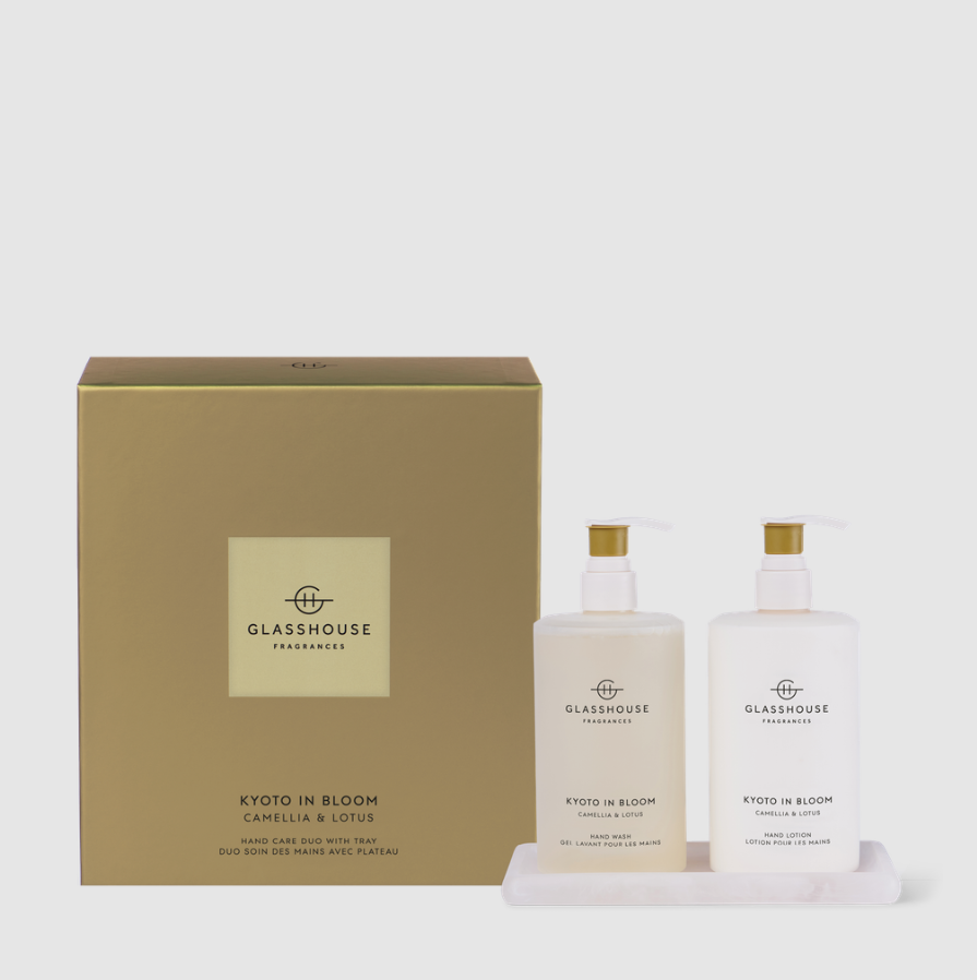 Product form Glasshouse Hand Care Duo Set- Kyoto In Bloom $80.00 The perfect set to go on any bathroom counter, this hand soap and hand lotion duo is perfect to keep... Read more Read more Add to cart This item is a recurring or deferred purchase. By continuing, I agree to the cancellation policy and authorize you to charge my payment method at the prices, frequency and dates listed on this page until my order is fulfilled or I cancel, if permitted.