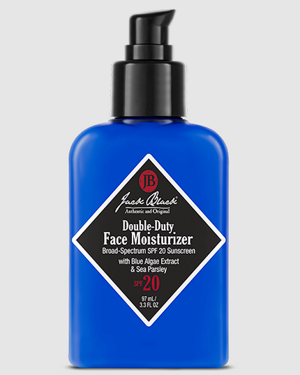 Product form Jack Black Double Duty Moisturizer 3.3oz $32.00 This Jack Black double duty moisturizer is a lightweight, emollient moisturizer that provides lasting hydration, helps improve the skin’s overall... Read more Read more Add to cart This item is a recurring or deferred purchase. By continuing, I agree to the cancellation policy and authorize you to charge my payment method at the prices, frequency and dates listed on this page until my order is fulfilled or I cancel, if permitted.