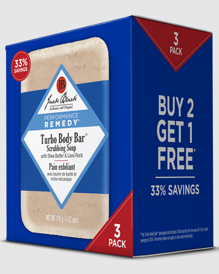 This pack contains three Jack Black turbo body bars that are energizing, deep-cleansing bar that scrubs away dirt and exfoliates the body for clean, smooth, healthy-looking skin!