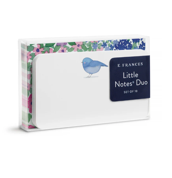 Product form Little Duo Set Birdie $10.00 This little notes duo set by E. Frances is a fun way to drop a bit of encouragement for your... Read more Read more Add to cart This item is a recurring or deferred purchase. By continuing, I agree to the cancellation policy and authorize you to charge my payment method at the prices, frequency and dates listed on this page until my order is fulfilled or I cancel, if permitted.