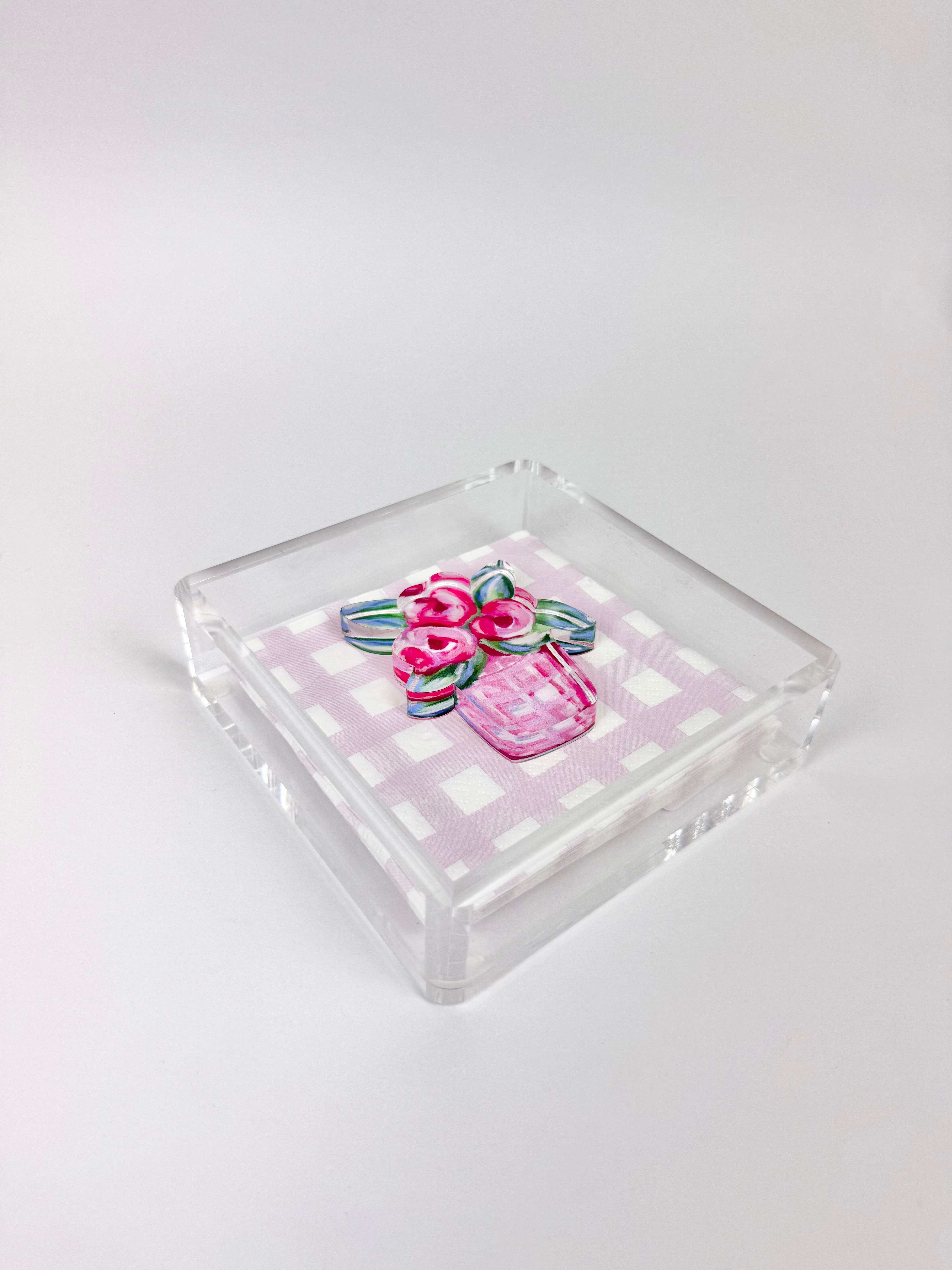 Product form Napkin Holder with Flower Weight $30.00 This 3-piece napkin holder set is a sweet addition to any table setting! Product Details Holder Size: 6" x 6"... Read more Read more Add to cart This item is a recurring or deferred purchase. By continuing, I agree to the cancellation policy and authorize you to charge my payment method at the prices, frequency and dates listed on this page until my order is fulfilled or I cancel, if permitted.