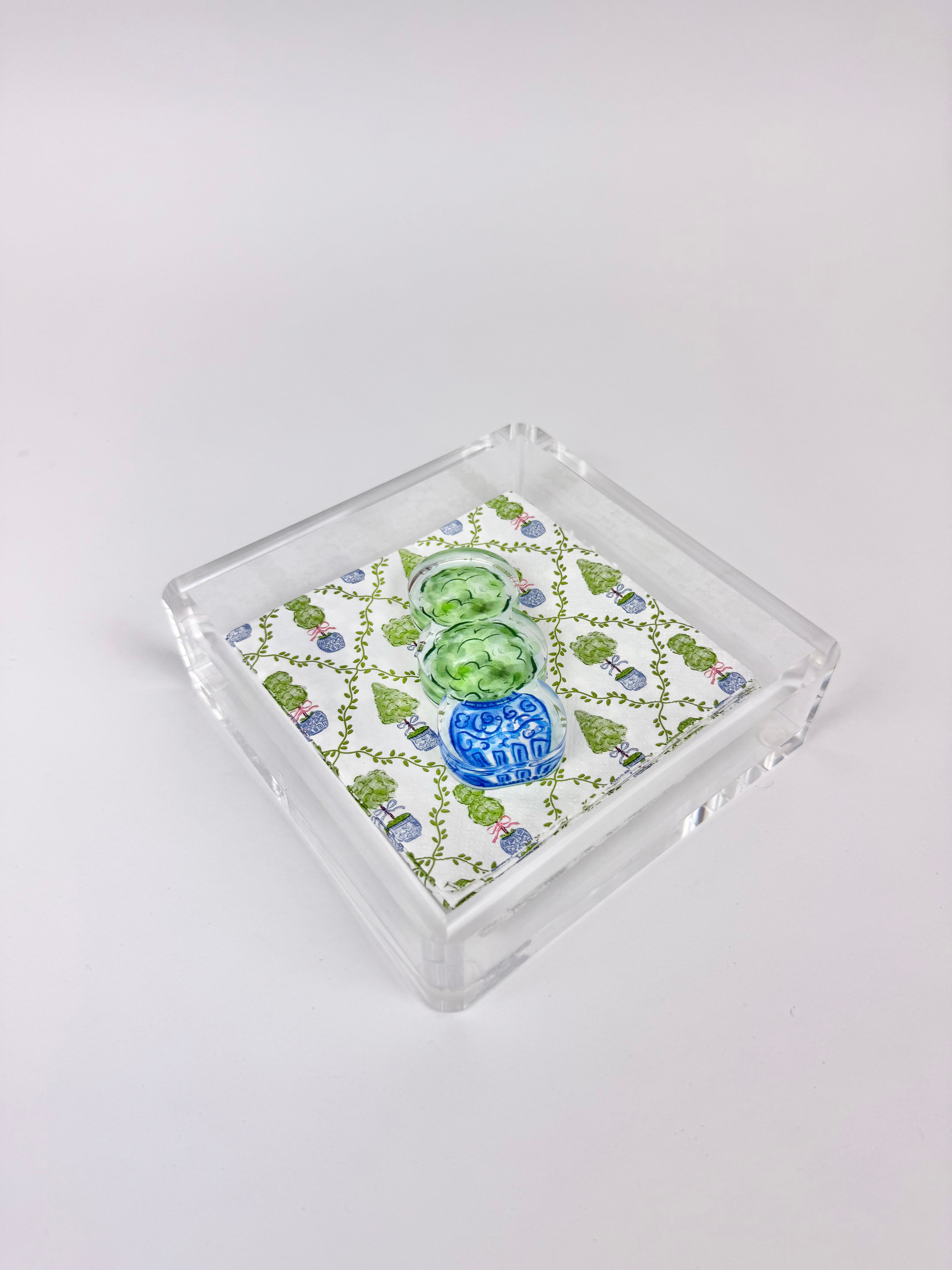 Product form Napkin Holder with Topiary Weight $30.00 This 3-piece napkin holder set is a sweet addition to any table setting! Product Details Holder Size: 6" x 6"... Read more Read more Add to cart This item is a recurring or deferred purchase. By continuing, I agree to the cancellation policy and authorize you to charge my payment method at the prices, frequency and dates listed on this page until my order is fulfilled or I cancel, if permitted.