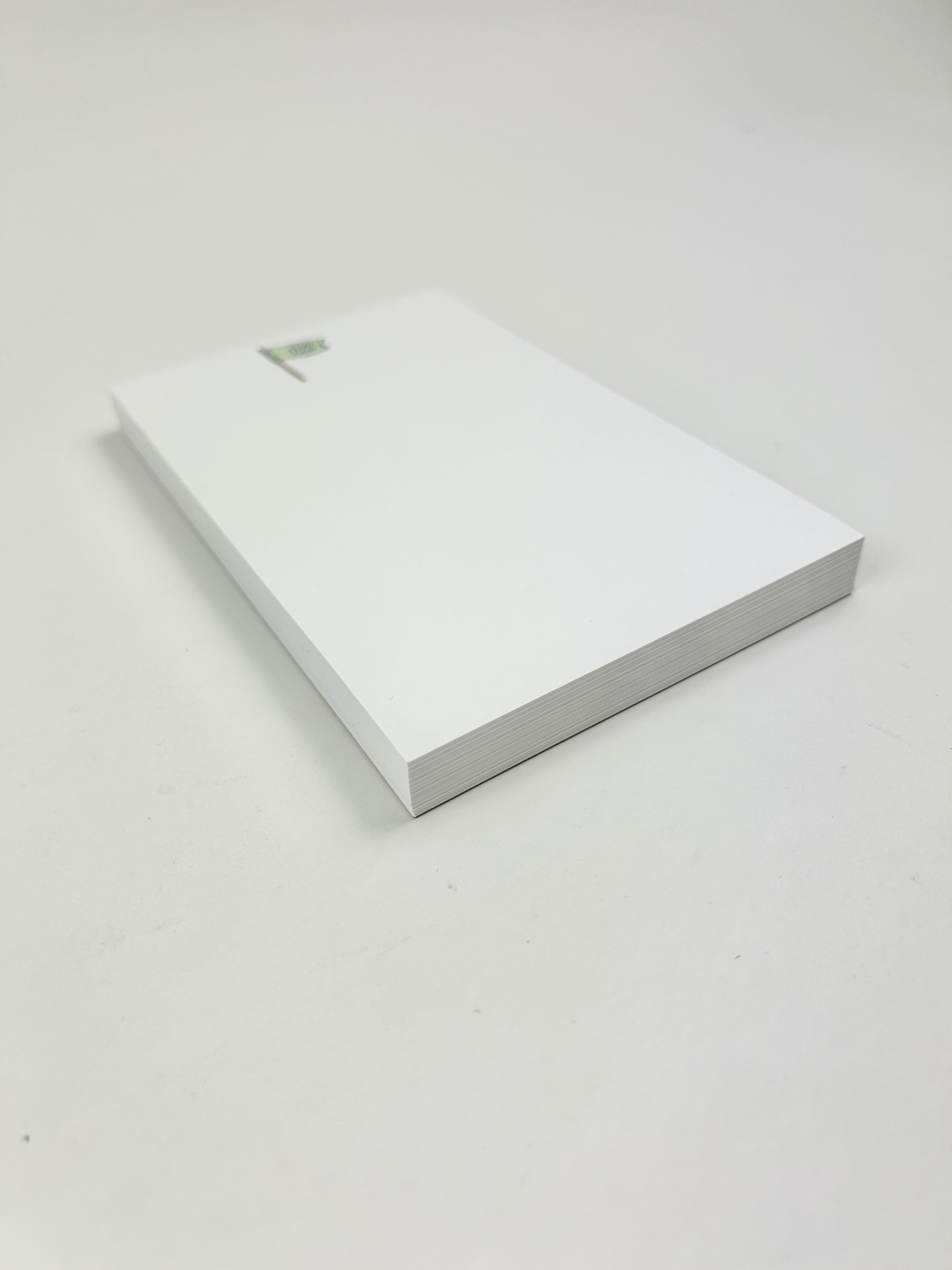 Product form Golf Flag Notepad $28.00 Product Details 50 sheets Dimensions: 4" x 6.5" Heavy weight, white paper stock Read more Read more Add to cart This item is a recurring or deferred purchase. By continuing, I agree to the cancellation policy and authorize you to charge my payment method at the prices, frequency and dates listed on this page until my order is fulfilled or I cancel, if permitted.