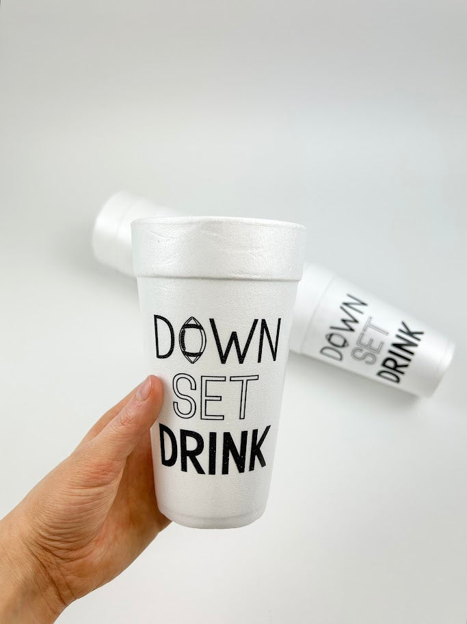 Product form Down Set Drink Foam Party Cup Set $16.00 Get ready to have fun at the tailgate with these foam cups! It's the perfect addition to your gameday setup.... Read more Read more Add to cart This item is a recurring or deferred purchase. By continuing, I agree to the cancellation policy and authorize you to charge my payment method at the prices, frequency and dates listed on this page until my order is fulfilled or I cancel, if permitted.