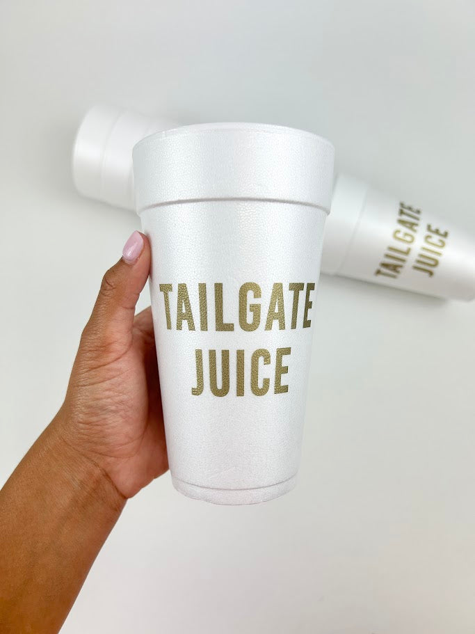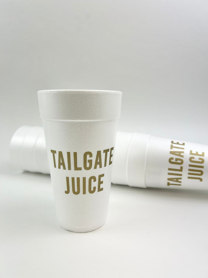 Product form Tailgate Juice Foam Party Cup Set $16.00 Get ready to have fun at the tailgate with these foam cups! It's the perfect addition to your gameday setup.... Read more Read more Add to cart This item is a recurring or deferred purchase. By continuing, I agree to the cancellation policy and authorize you to charge my payment method at the prices, frequency and dates listed on this page until my order is fulfilled or I cancel, if permitted.