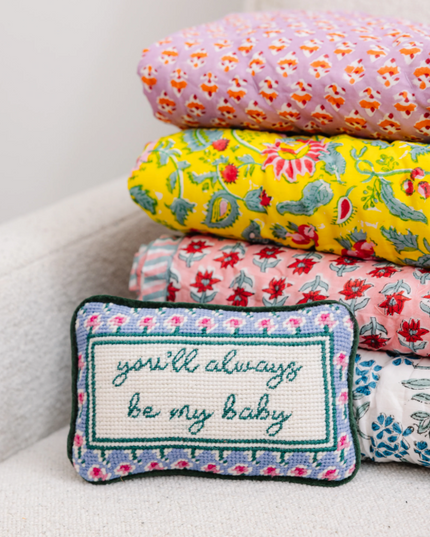 Product form Be By Baby Needlepoint Mini Pillow $52.00 This embroidered pillow and backed in luxe green velvet is a sweet addition to any nursery decor! Product Details 5" x... Read more Read more Add to cart This item is a recurring or deferred purchase. By continuing, I agree to the cancellation policy and authorize you to charge my payment method at the prices, frequency and dates listed on this page until my order is fulfilled or I cancel, if permitted.