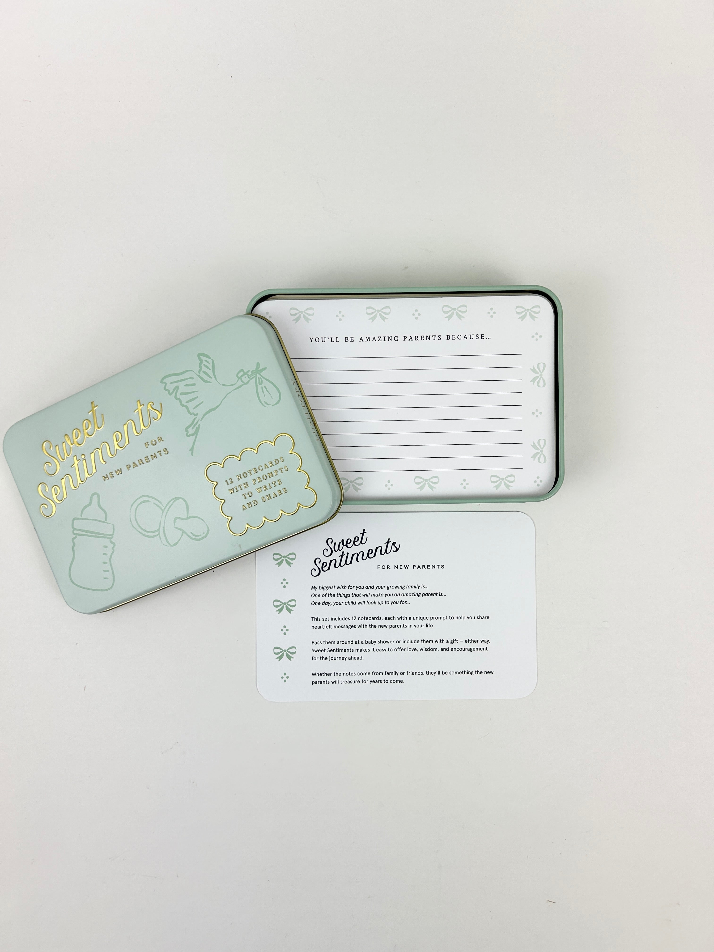 Product form For New Parents Sweet Sentiment Cards $22.00 This litte box features some notecards with prompts for friends or family to write to expecting parents! Product Details Size... Read more Read more Add to cart This item is a recurring or deferred purchase. By continuing, I agree to the cancellation policy and authorize you to charge my payment method at the prices, frequency and dates listed on this page until my order is fulfilled or I cancel, if permitted.
