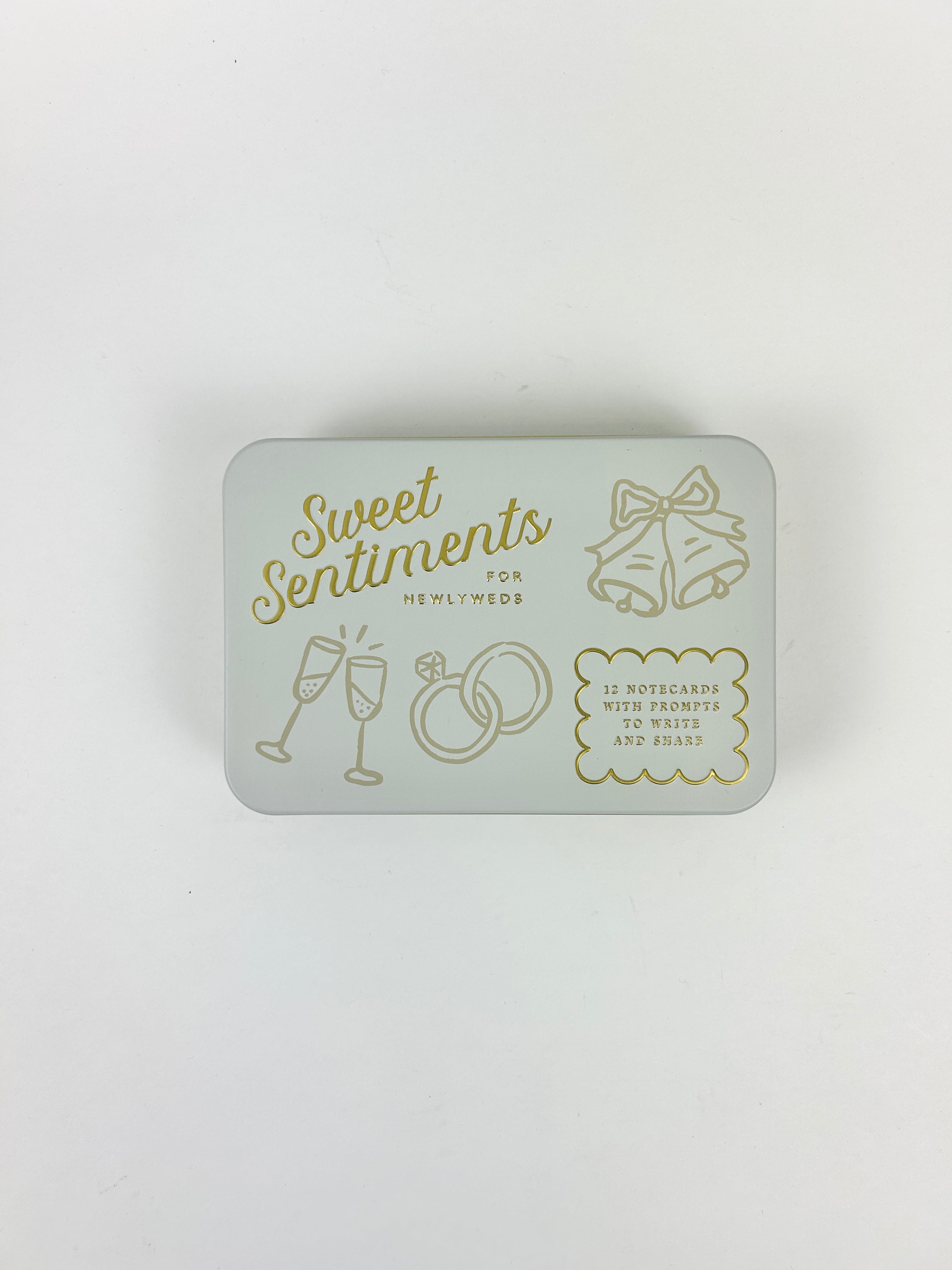 Product form For The Newlyweds Sweet Sentiment Cards $22.00 This litte box features some notecards with prompts for friends or family to write to a newlywed couple! Product Details... Read more Read more Add to cart This item is a recurring or deferred purchase. By continuing, I agree to the cancellation policy and authorize you to charge my payment method at the prices, frequency and dates listed on this page until my order is fulfilled or I cancel, if permitted.