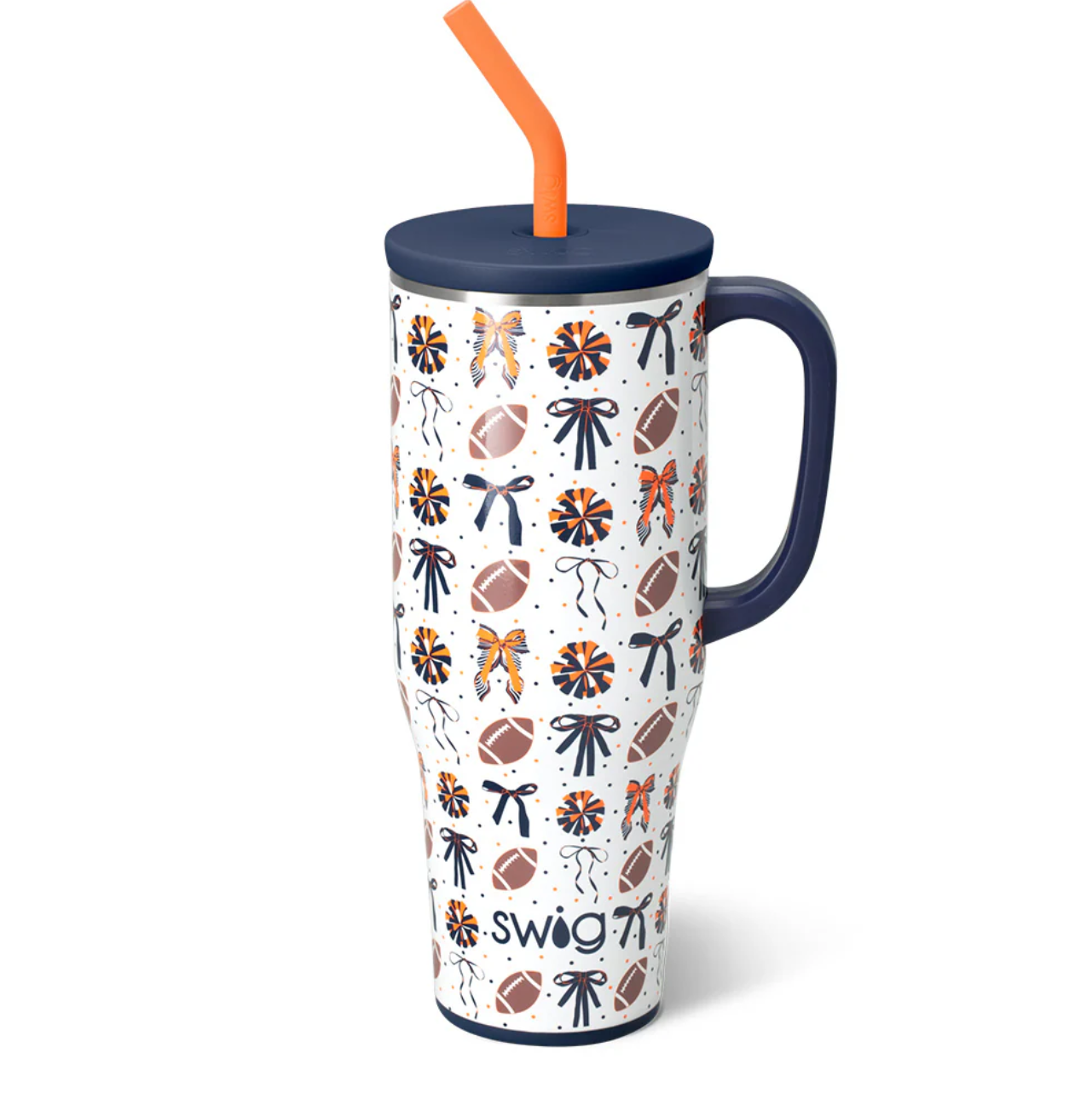 Product form Swig 40oz Mega Mug We've Got Spirit Navy/Orange $54.00 Product Details Size: 9.9" H x 5.9" W Holds up to 40 fl oz Keeps drinks cold 24+ hours and... Read more Read more Add to cart This item is a recurring or deferred purchase. By continuing, I agree to the cancellation policy and authorize you to charge my payment method at the prices, frequency and dates listed on this page until my order is fulfilled or I cancel, if permitted.