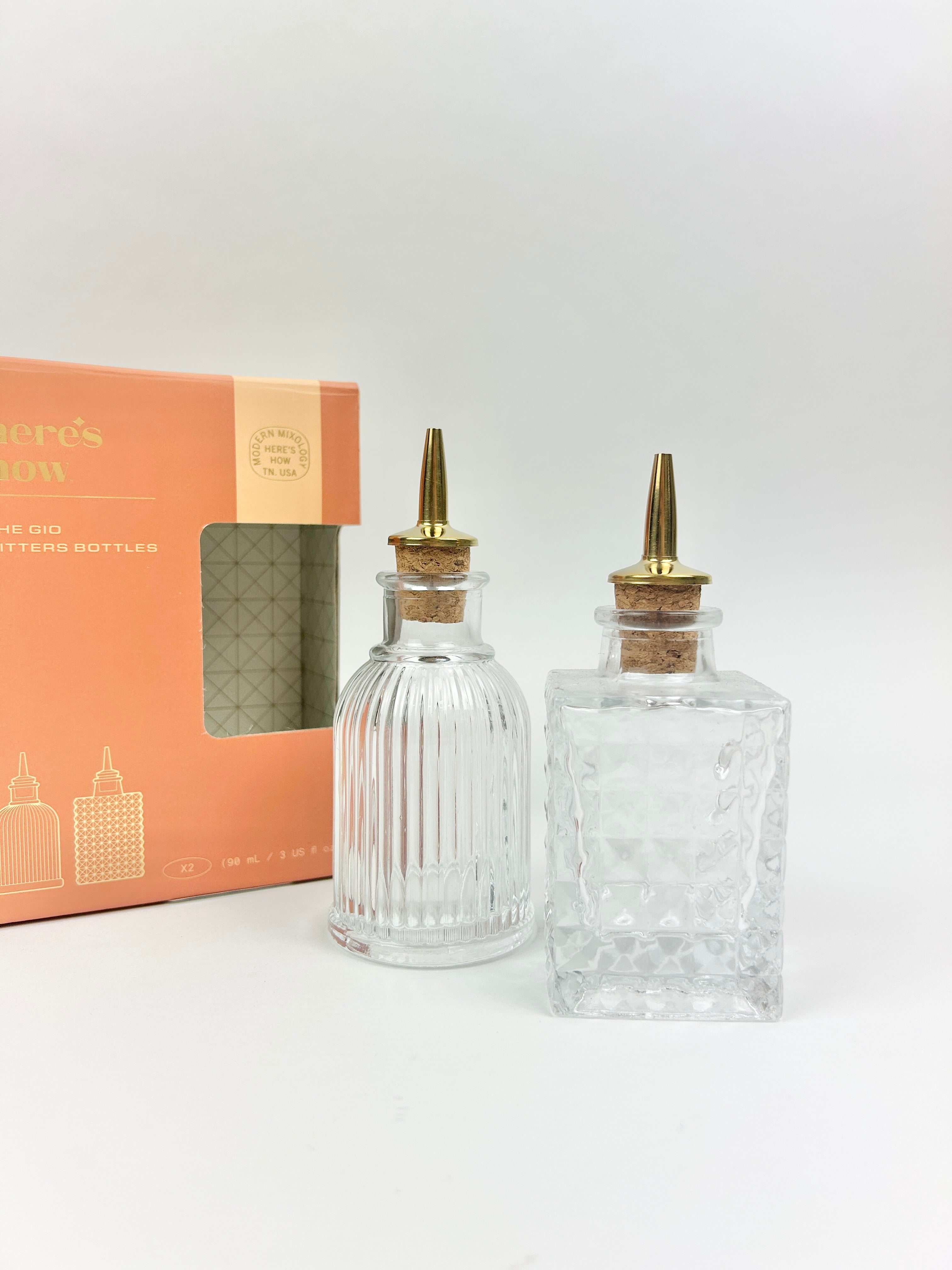 Product form The Gio Bitters Bottles Set of 2 $32.00 The perfect way to elevate your bar cart, these glass bitters bottles are a chic accessory for any bar setup!... Read more Read more Add to cart This item is a recurring or deferred purchase. By continuing, I agree to the cancellation policy and authorize you to charge my payment method at the prices, frequency and dates listed on this page until my order is fulfilled or I cancel, if permitted.