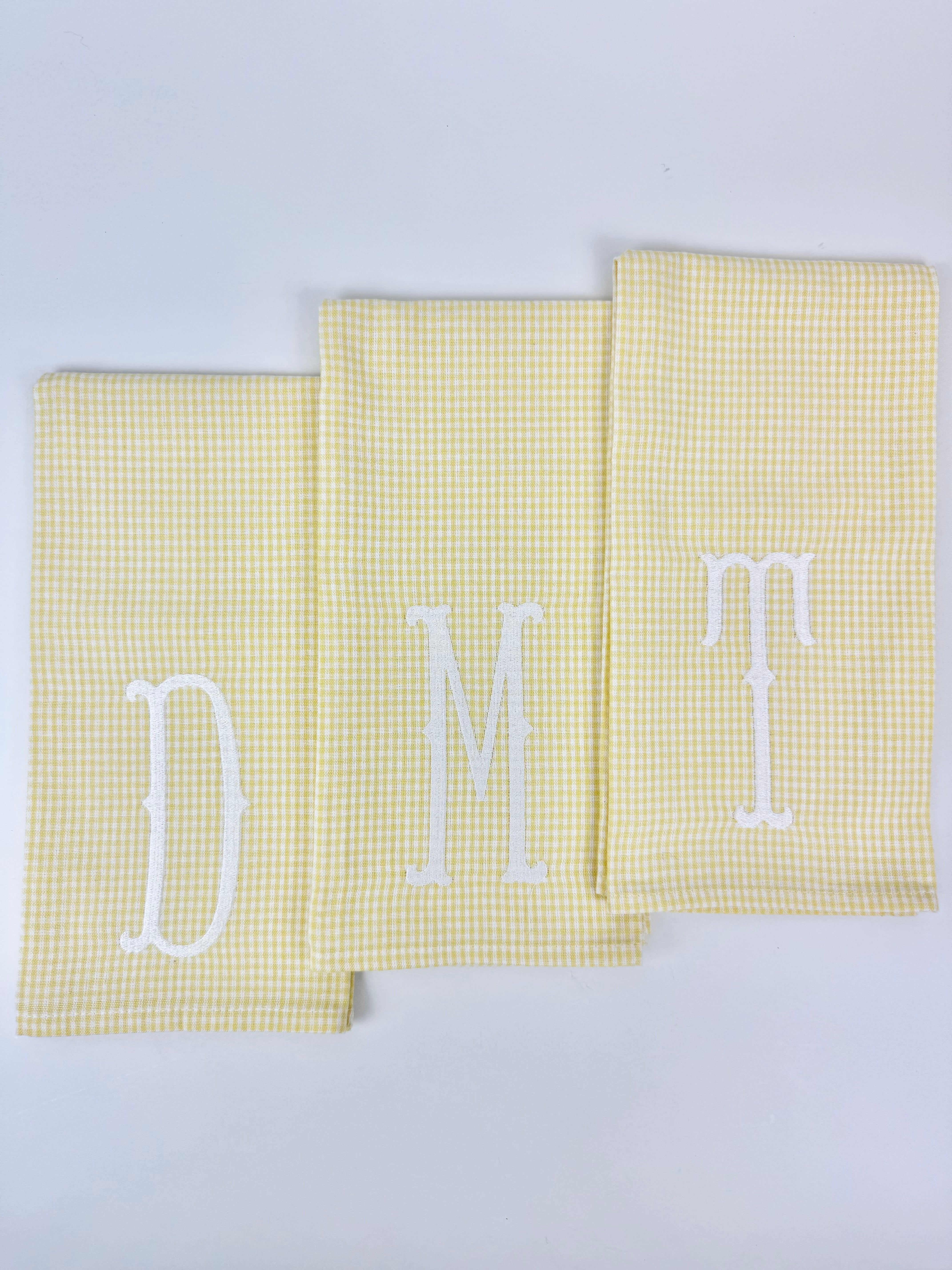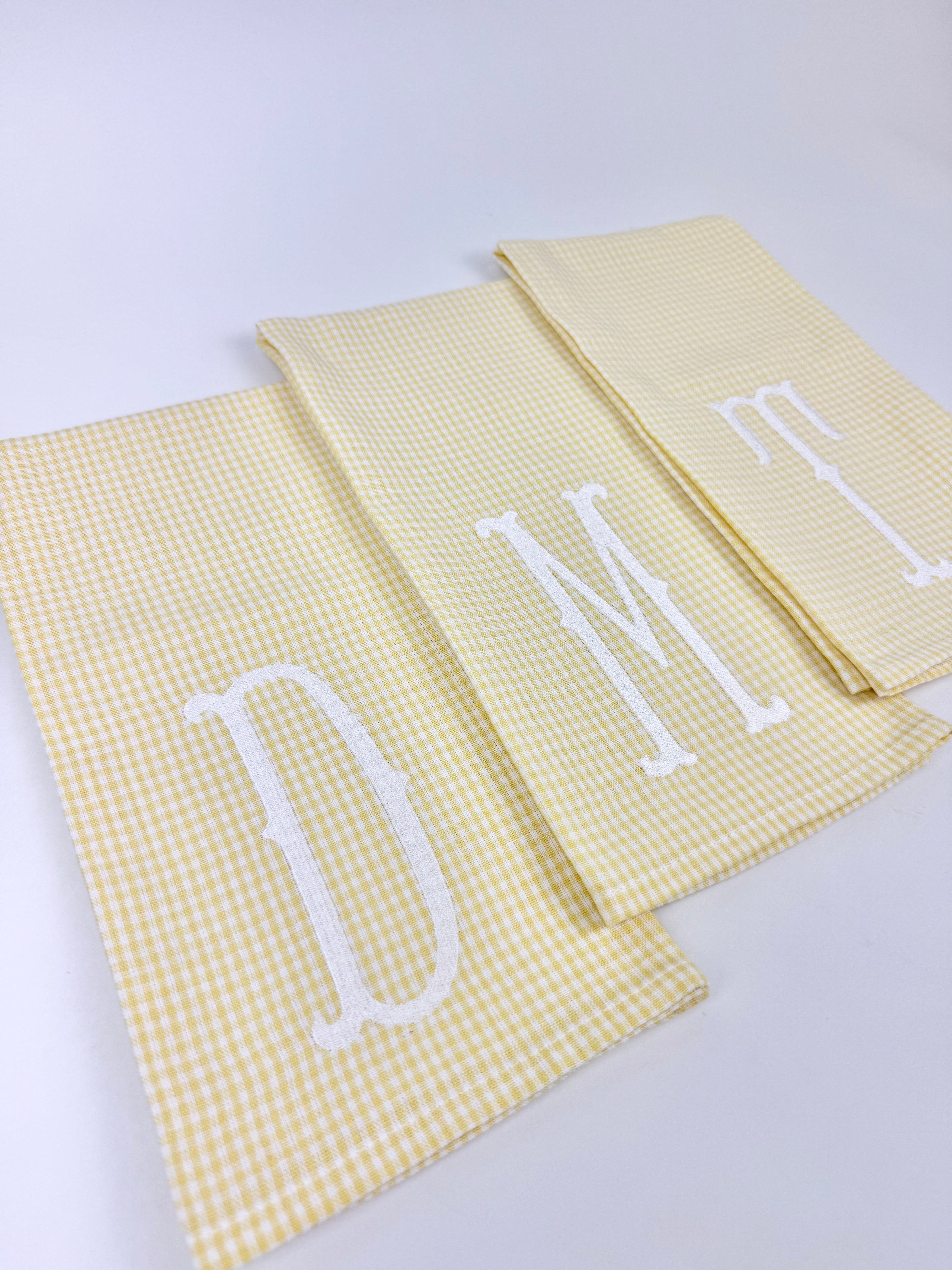 Product form Yellow Gingham Letter Towel $20.00 Product Details Size: 28" x 20" Material: 100% cotton Machine wash cold on gentle cycle Do not use clorine bleach,... Read more Read more A B C E F G H J K L M N P R S T W O D Letter A B C E F G H J K L M N P R S T W O D Add to cart This item is a recurring or deferred purchase. By continuing, I agree to the cancellation policy and authorize you to charge my payment method at the prices, frequency and dates listed on this page until my order is fulfilled or I cancel, if permitted.