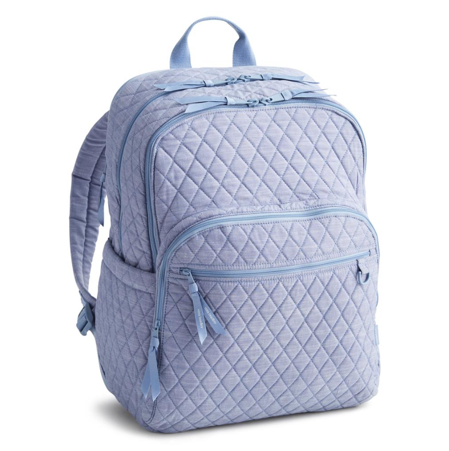 Product form Vera Bradley Blue Chambray Large Bancroft Backpack $155.00 Product Details Size: 12"W x 16.5"H x 9"D Top Handle Drop: 2" Adjsutable shoulder straps Made with premium cotton material... Read more Read more Add to cart This item is a recurring or deferred purchase. By continuing, I agree to the cancellation policy and authorize you to charge my payment method at the prices, frequency and dates listed on this page until my order is fulfilled or I cancel, if permitted.